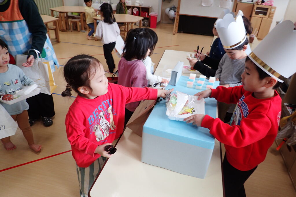 幼児クラスは店員さんとお客さんを交代で、乳児クラスはお客さんになってお買い物を楽しみました。