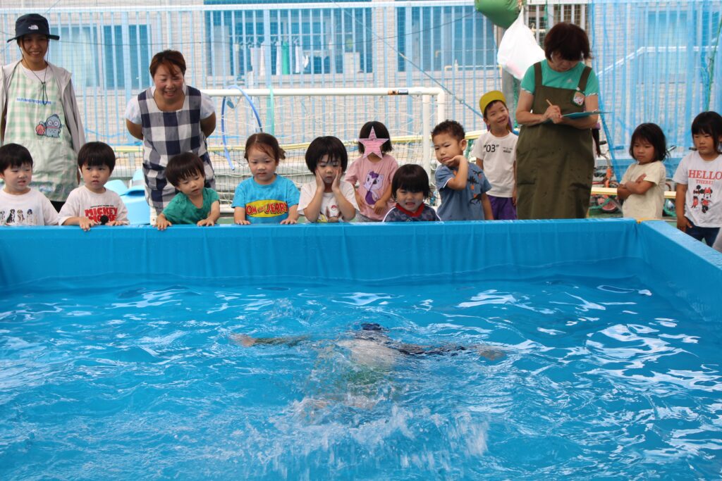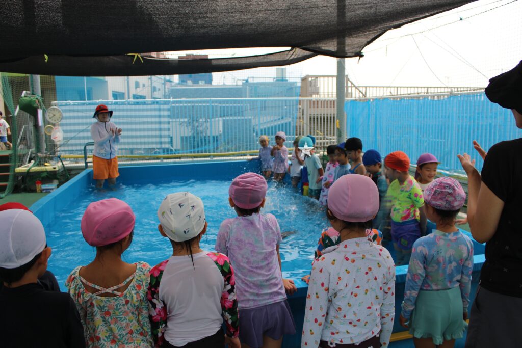 今年度もプール最終日を迎え、年長児がプール発表会を行いました。