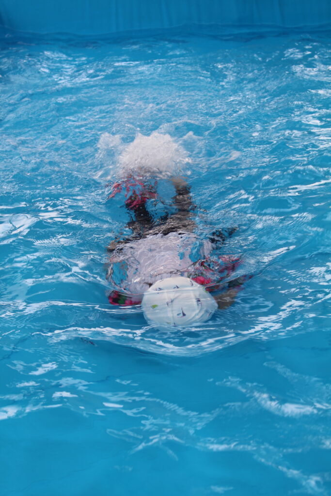 息継ぎをしながらプールを往復、泳ぎ切りました!