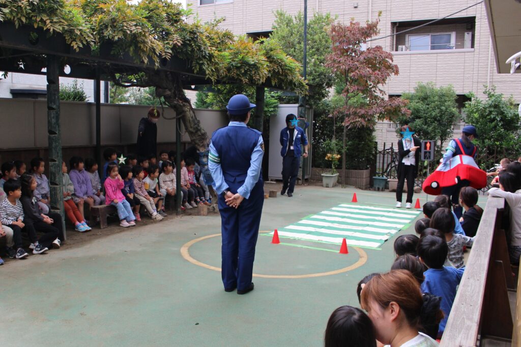 今年も碑文谷警察署の方に来ていただき、交通安全教室を行いました。