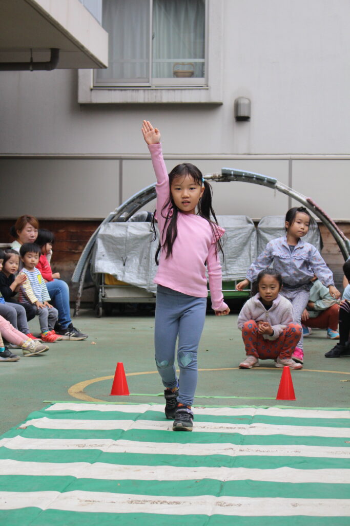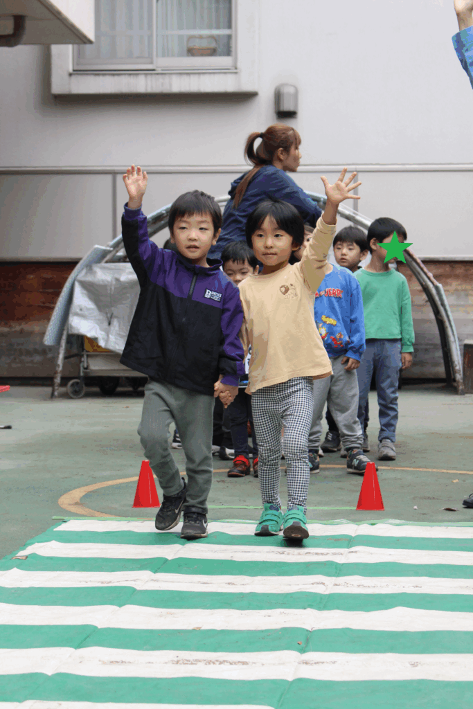 5歳児さんは一人で、ピーンと真っすぐ手を伸ばして渡る姿が素敵です。