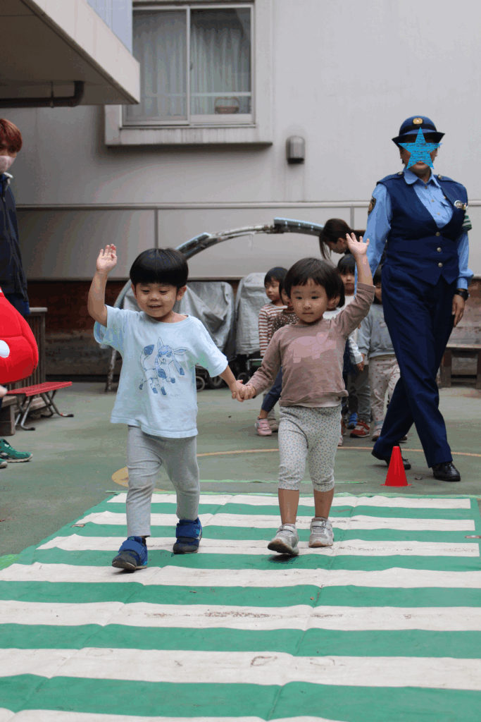 4歳児さんはしっかり左右を確認しながら渡ることができました。