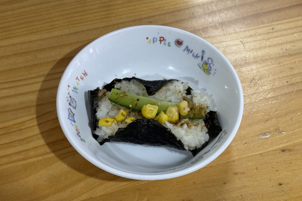 おやつは自分で作る恵方巻でした!南南東、向いて食べられたかな?